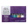 Settet inneholder: 6 x 37 ml tuber (Cadmium Yellow Pale Hue, Permanent Alizarin Crimson, French Ultramarine, Phthalo Green (Blue Shade), Yellow Ochre og Titanium White.)