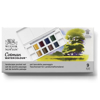 Settet inneholder 8 halfpan farger: Cadmium Yellow Hue, Alizarin Crimson Hue, Ultramarine, Sap Green, Yellow Ochre, Raw Umber, Burnt Sienna og Payne's Gray.