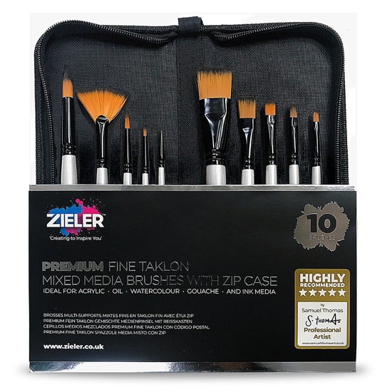 Premium mixed media sett fra Zieler i glidelåsmappe. Settet egner seg for akryl-, gouache-, olje- og akvarellmaling.
