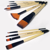 Rund 1, 4 og 10 - Vifte 4 - Filbert 2 og 6 - Flat Wash 1" og 1,5" - Flat shader 8 - Spotter 10/0