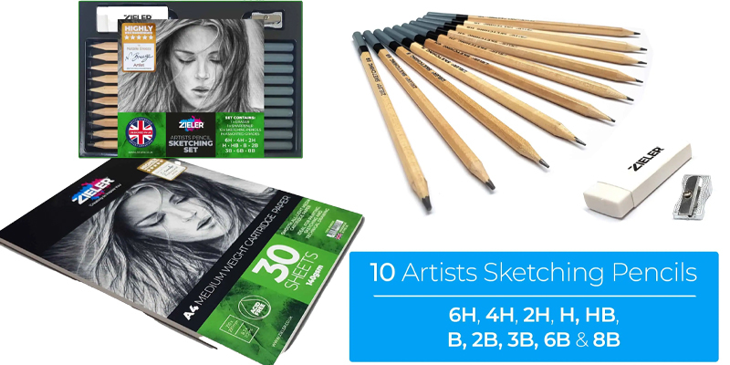 Zieler Sketching Pencil set er ideelt for både den uerfarne og erfarne. Passer for alle aldre som ønsker å utvikle sine tegneferdigheter.