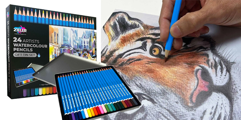 Zieler Watercolour pencils set inneholder høypigmenterte blyanter i en rekke toner for å gi kunstverket detaljer og liv.