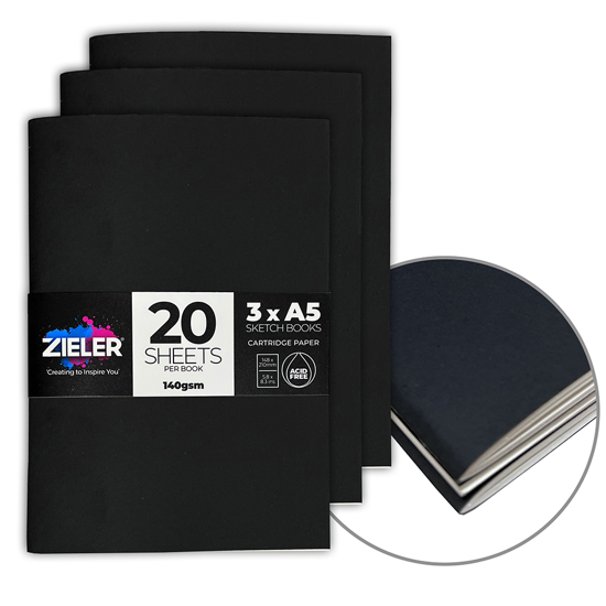 Zieler Soft-Cover Sketchbooks, A5. 3 stk.